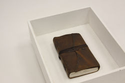 Leather sketchbook, wood, acrylic